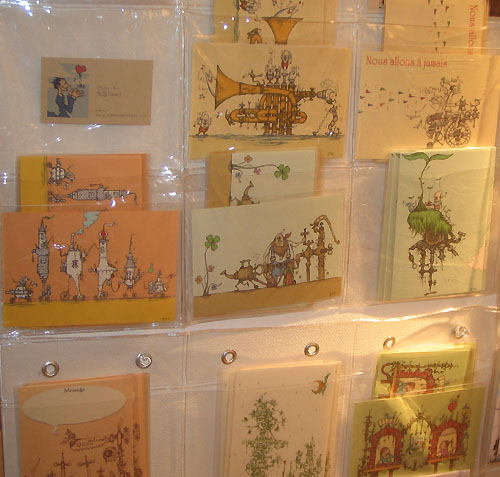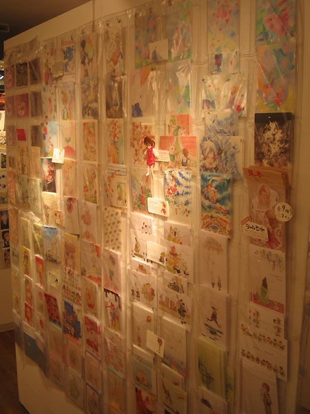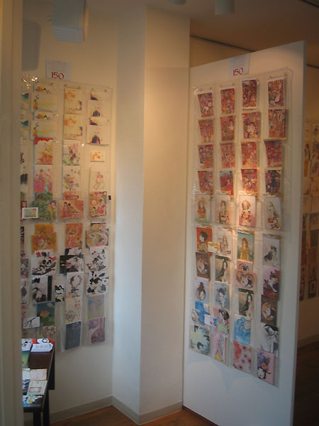 壁一面に並んでいるの沢山のポストカードを興味深そうに見みながら