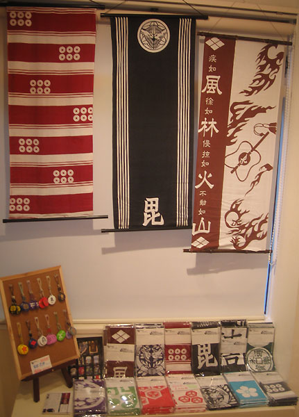 奥の方には戦国ブランド"もののふさん"の家紋携帯クリーナーと家紋手ぬぐい