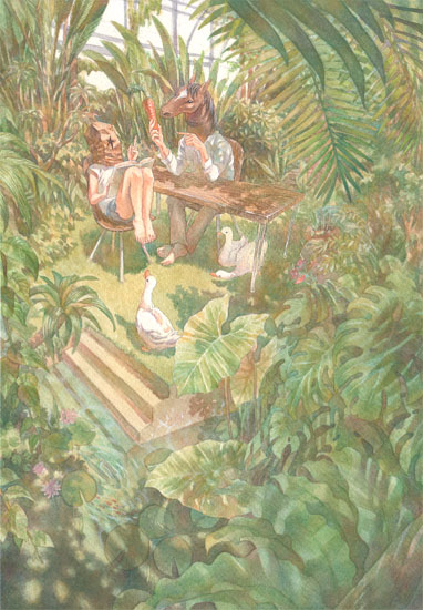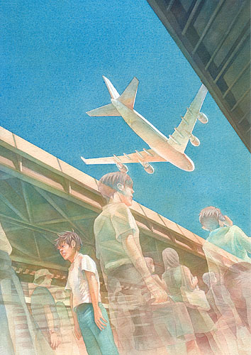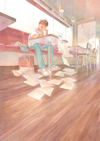 独特な構図で切り取った世界を、淡く・色鮮やかに水彩で表現している作家さんです。